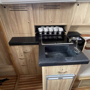 Jacht  stworzony dla wymagających. Jedna z kilku naszych jednostek o charakterze Premium. Świetny wybór dla żeglarzy poszukujących dużego jachtu, w którym można podnieść płetwę steru sinik oraz miecz i bezpiecznie stanąć na dziko by w pełni cieszyć się tym co mogą zaoferować wielkie jeziora mazurskie. Wygoda połączona z funkcjonalnością. Duży jacht mieszczący do 10 osób. Wysokość w mesie 195cm! Wszystkie możliwe przestrzenie na jachcie zostały zaprojektowane ta by ułatwić funkcjonowanie. Zwiększona liczba szafek oraz szuflad pozwala na lepsze zorganizowanie przestrzeni życiowej. Bardzo dobre właściwości