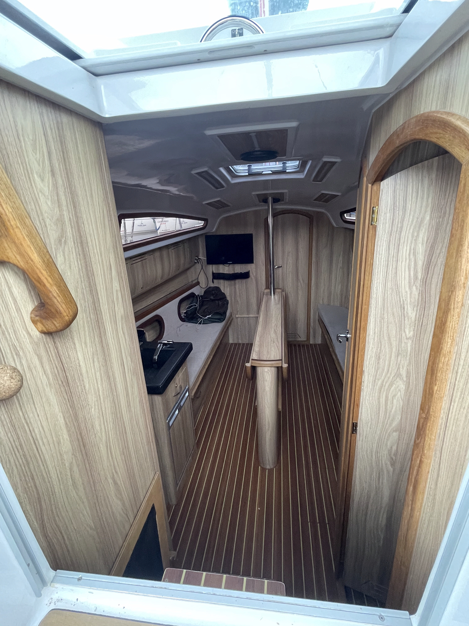 Jacht  stworzony dla wymagających. Jedna z kilku naszych jednostek o charakterze Premium. Świetny wybór dla żeglarzy poszukujących dużego jachtu, w którym można podnieść płetwę steru sinik oraz miecz i bezpiecznie stanąć na dziko by w pełni cieszyć się tym co mogą zaoferować wielkie jeziora mazurskie. Wygoda połączona z funkcjonalnością. Duży jacht mieszczący do 10 osób. Wysokość w mesie 195cm! Wszystkie możliwe przestrzenie na jachcie zostały zaprojektowane ta by ułatwić funkcjonowanie. Zwiększona liczba szafek oraz szuflad pozwala na lepsze zorganizowanie przestrzeni życiowej. Bardzo dobre właściwości