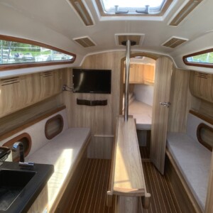 Jacht stworzony dla najbardziej wymagających. Jedna z kilku naszych jednostek o charakterze Premium. Świetny wybór dla żeglarzy poszukujących dużego jachtu, w którym można podnieść płetwę steru sinik oraz miecz i bezpiecznie stanąć na dziko by w pełni cieszyć się tym co mogą zaoferować wielkie jeziora mazurskie. Wygoda połączona z funkcjonalnością. Duży jacht mieszczący do 10 osób. Wysokość w mesie 195cm! Wszystkie możliwe przestrzenie na jachcie zostały zaprojektowane ta by ułatwić funkcjonowanie. Zwiększona liczba szafek oraz szuflad pozwala na lepsze zorganizowanie przestrzeni życiowej. Bardzo dobre właściwości nautyczne