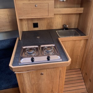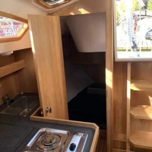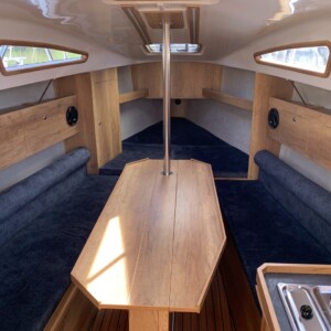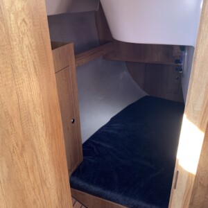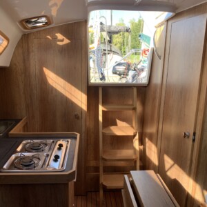 Szybki, wygodny, kameralny. Idealny jacht dla 4-6 osób. Doskonałe właściwości nautyczne. Świetny wybór dla żeglarzy pragnących czerpać przyjemność z żeglowania. Wygoda połączona z funkcjonalnością. Na jachcie posiadamy jedną kabinę zamykaną w części rufowej co zapewnia nam dużą prywatność. Estetyka nowoczesna bardziej minimalistyczna w środku by zapewnić jak największą ergonomię w funkcjonowaniu.